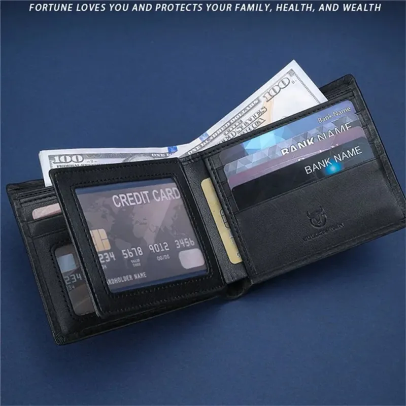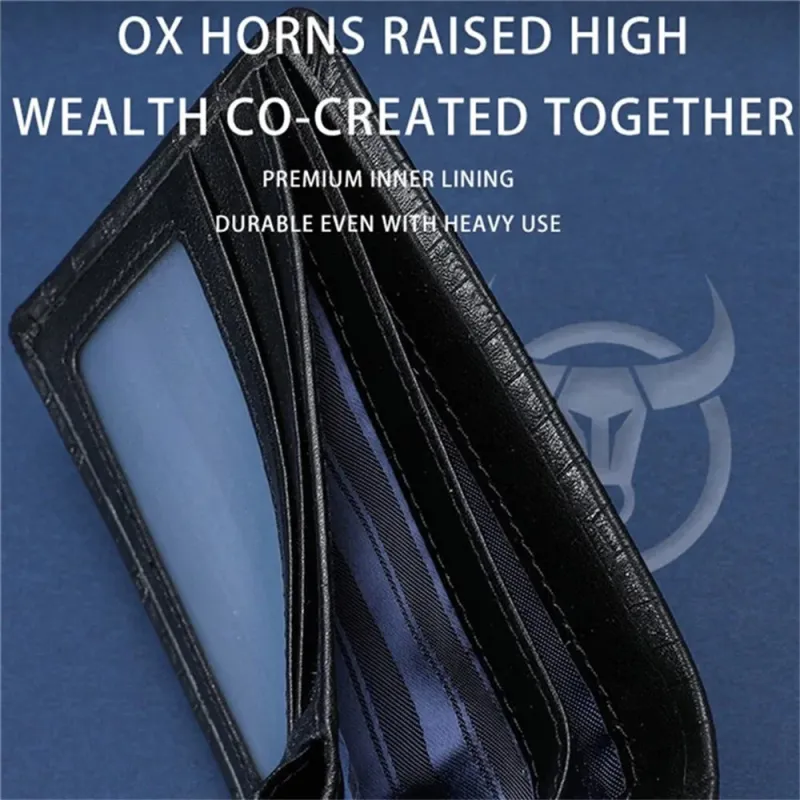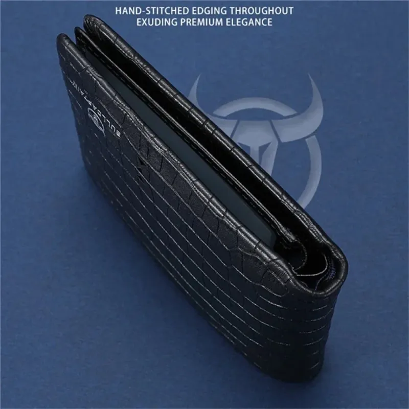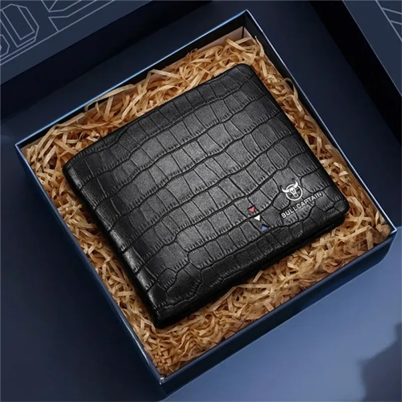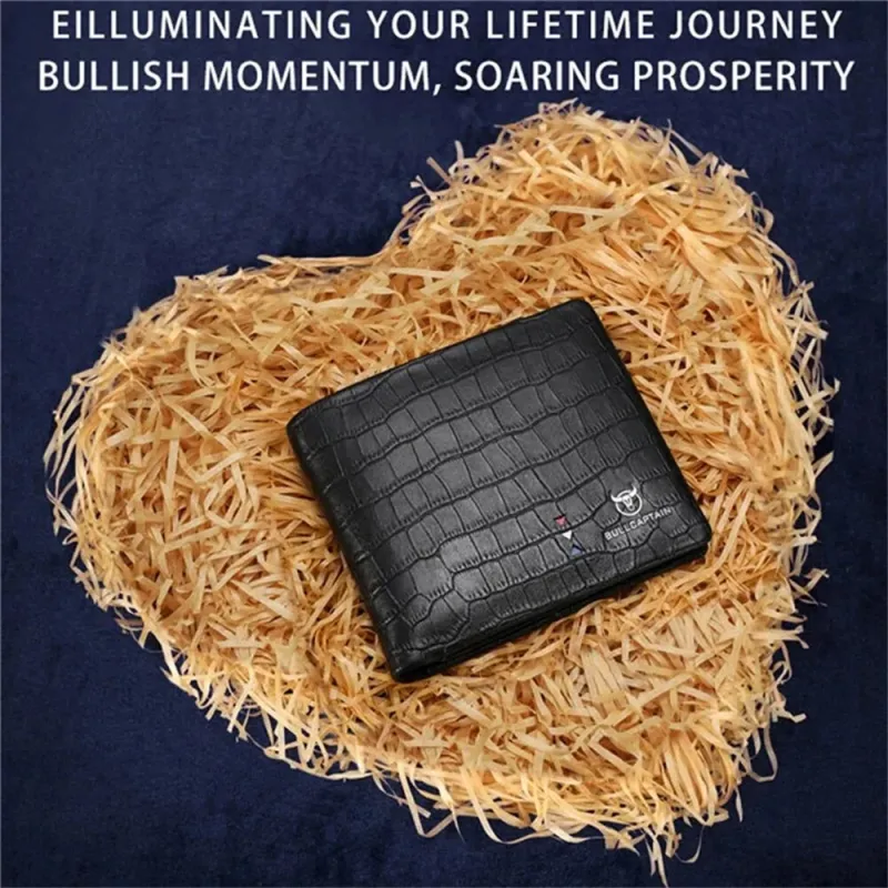 BULLCAPTAIN Business Casual Billfold Cowhide Leather Men Wallet with Gift Box Short Crocodile Pattern Holder RFID Money Clip Gift for Boyfriend Father Husband Gift