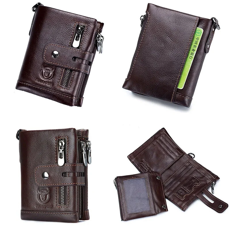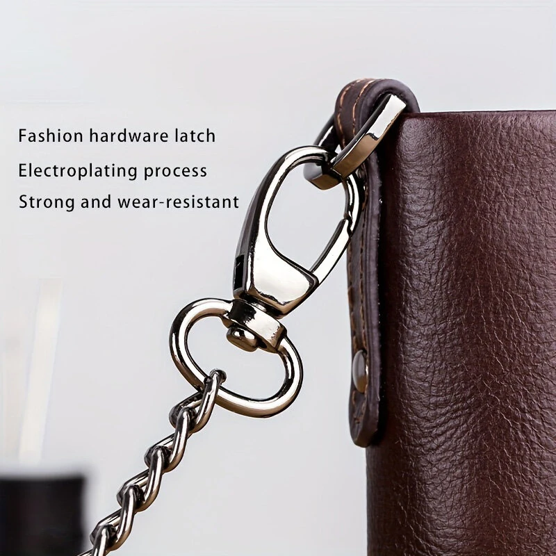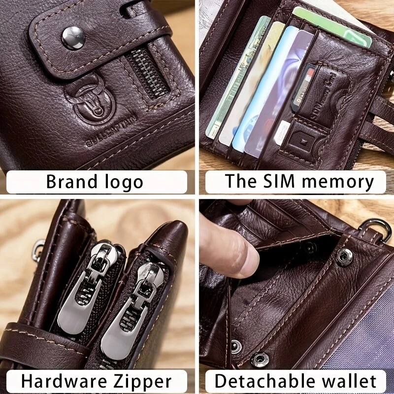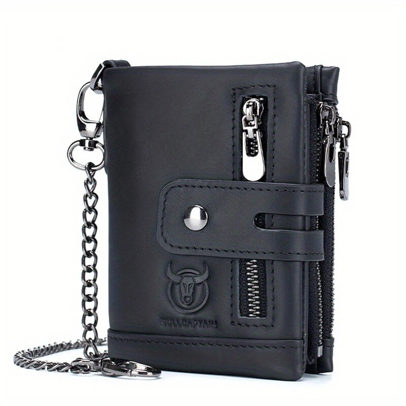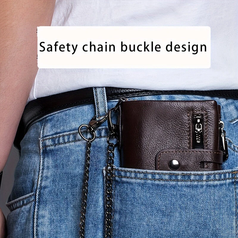 BULLCAPTAIN Genuine Leather Men's Wallet, Large Capacity RFID Blocking Wallet, Casual Retro Multifunctional Card Slots Purse, Card Bag with Anti-lost Chain,Wallet Gifts for Men with Gift Box