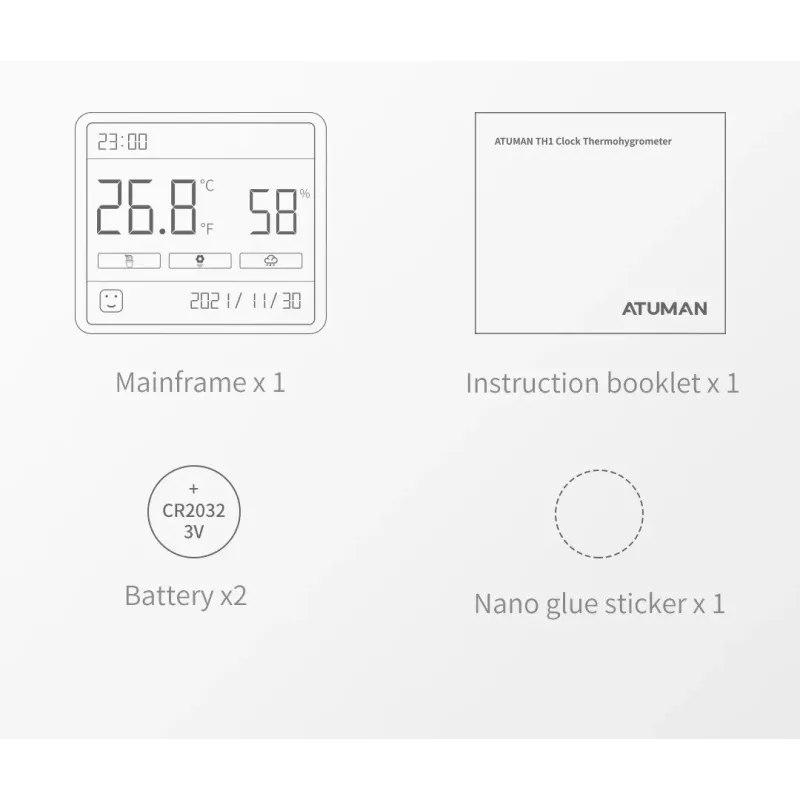 2Pcs Xiaomi DUKA Atuman TH1 Temperature Humidity Meter LCD Digital Thermometer Hygrometer Sensor Gauge Weather Station Clock Home Indoor Use