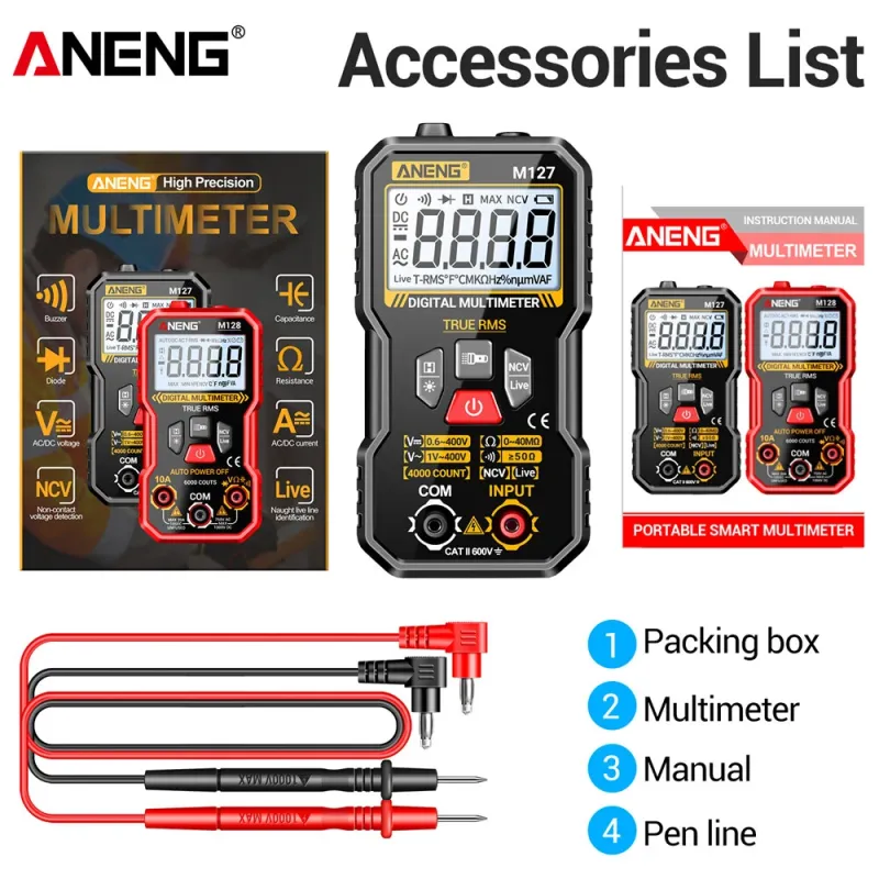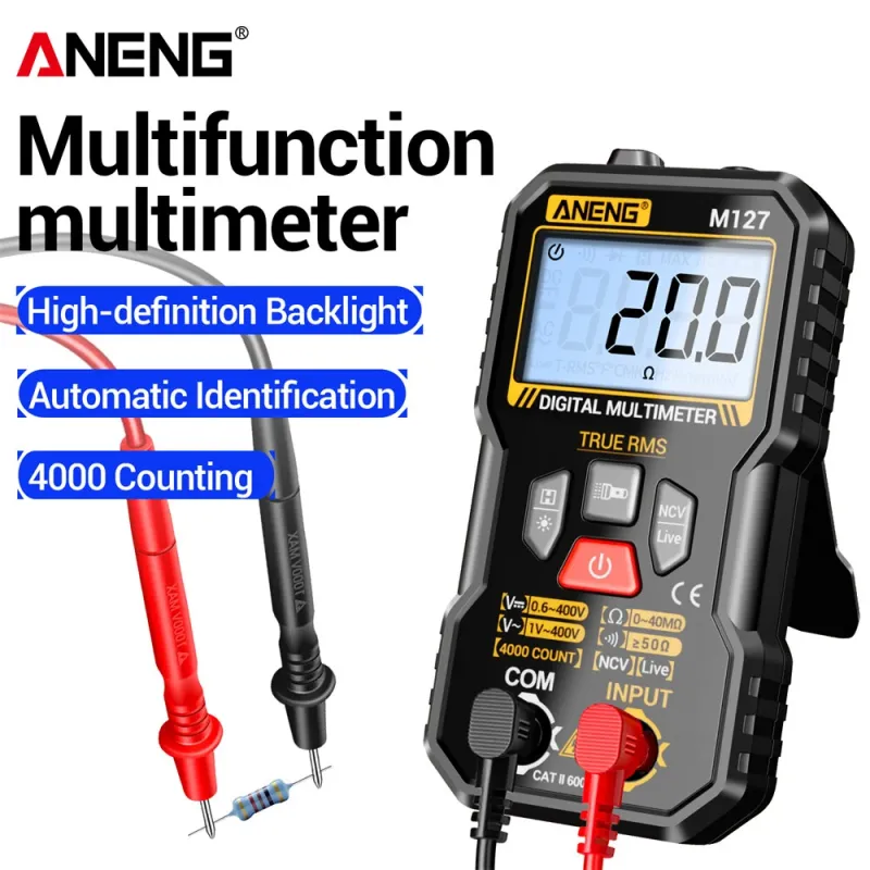 ANENG M127 Digital Multimeter True RMS 4000 Counts Automatic Identification High-Definition Backlight LCD Compact Portable Multimeter AC DC Voltage Resistance Measurement
