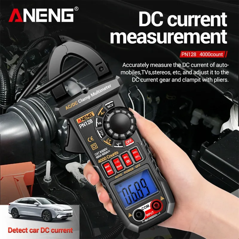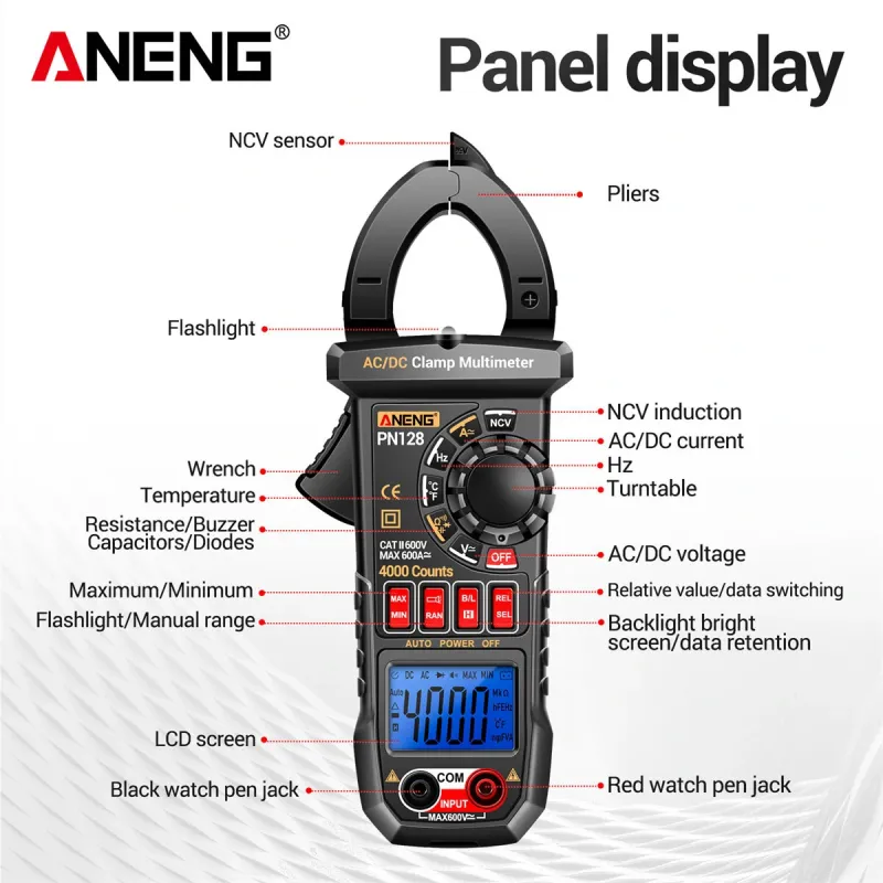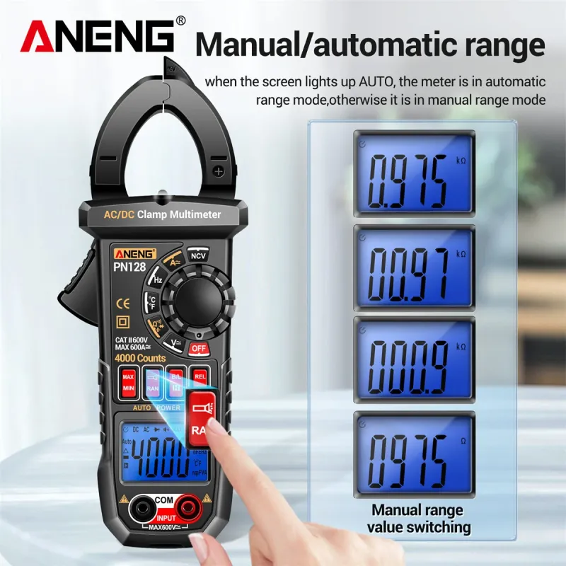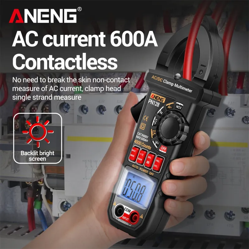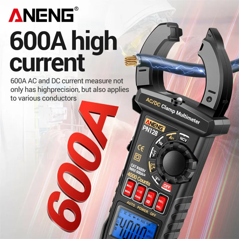 ANENG PN128 Clamp Meter 4000 Count Multimeter AC/DC Current Voltage Resistance Capacitance Temperature Measurement Tool with Backlit LCD