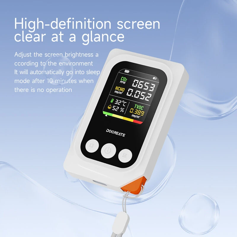 CD52 Portable Air Quality Monitor 5 in 1 Formaldehyde TVOC CO2 Temperature Humidity Rechargeable Compact Device