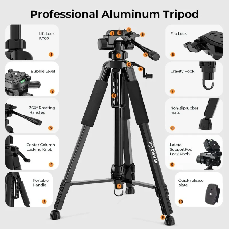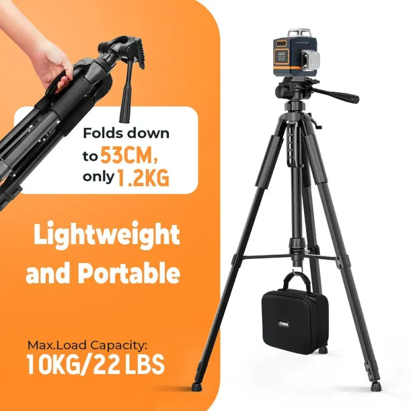 CIGMAN CTP01 Professional Adjustable Laser Level Tripod Lightweight Aluminum 1.5M Height 360 Rotation 3-Way Swivel Pan Head for Laser Levels Cameras Projectors Phones