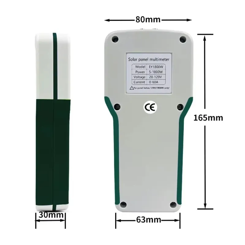 EY-1800W Solar Panel Tester Solar MPPT Meter Multimeter 5-1800W Power Range 20-120V Voltage 0-60A Current LCD Display Safe Multi-Protection Portable Design