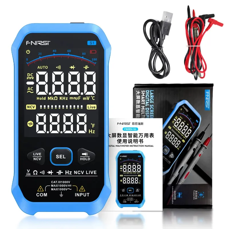 FNIRSI-S1 9999 Counts Digital Multimeter AC DC Voltage Resistance Capacitance Diode NCV Hertz Live Wire Tester with Thermocouple