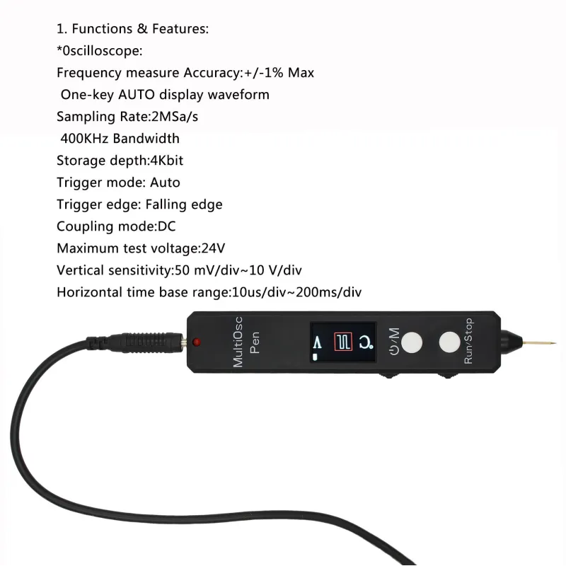 Four-in-One Multifunctional Pen 2MSa/s Sampling Rate 400KHz Bandwidth High Precision Voltage Meter Resistance Diode Oscilloscope Tester