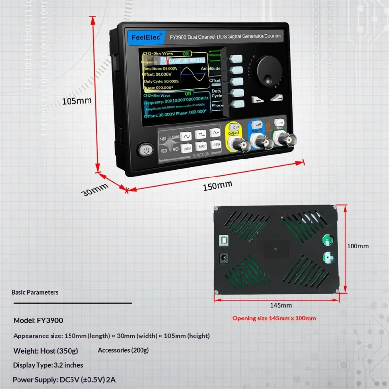 FY3900 Dual Channel Signal Generator 10MHz-30MHz High Precision Frequency Source Arbitrary Waveform Generator Lab Equipment