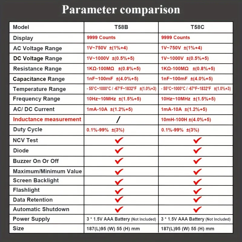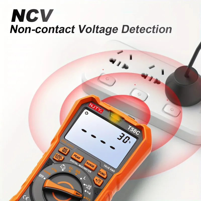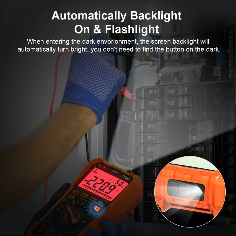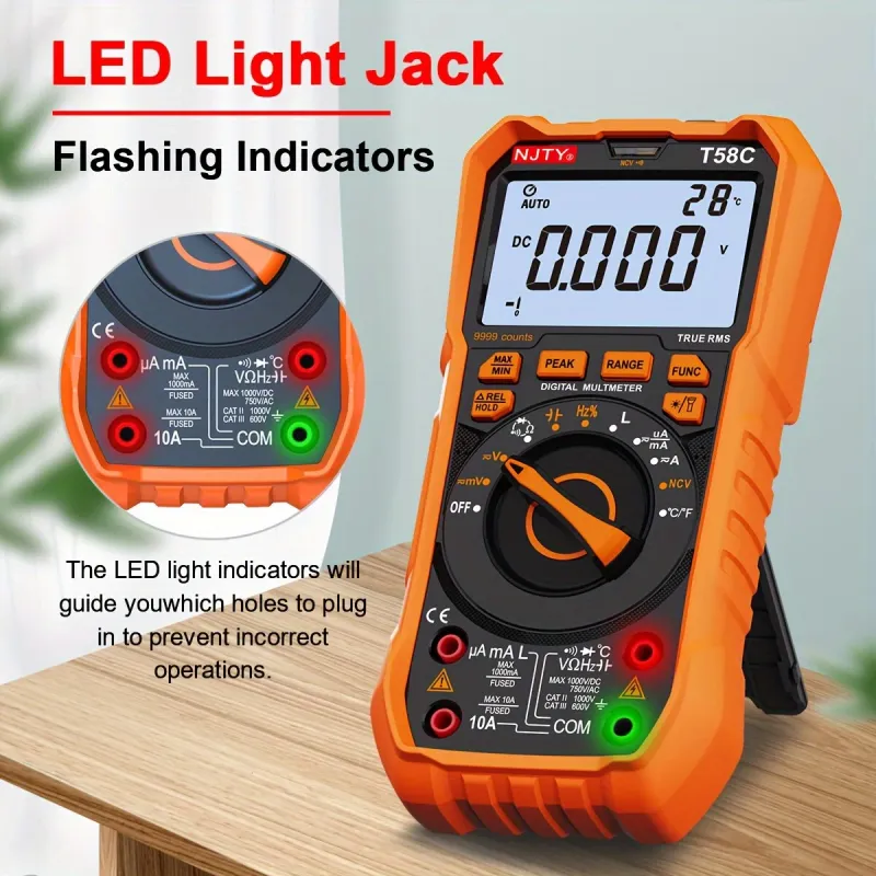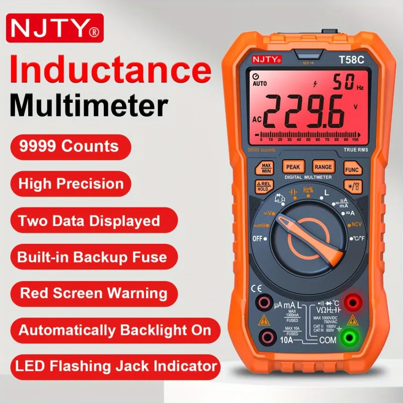 NJTY T58B T58C Inductance Multimeter 9999 Counts High Precision AC DC Voltage Current Resistance Capacitance Frequency Tester Advanced Features Backlit Screen Flashlight Automatic Shutdown