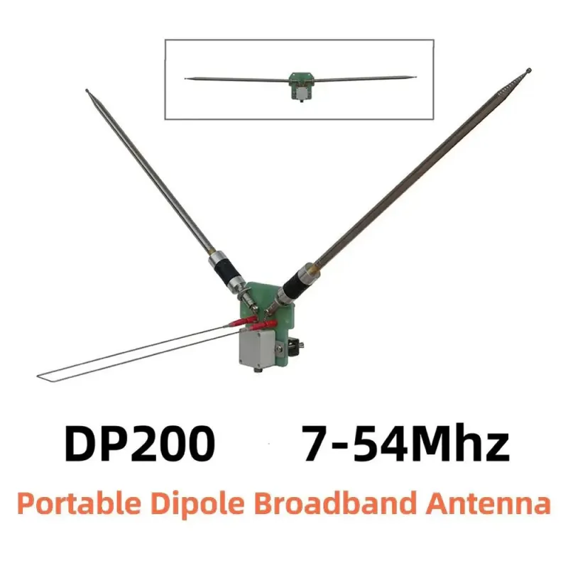 DP200 7-54MHz 200W Portable Dipole Antenna Stainless Steel Telescopic Design for UV Band Horizontal Polarization SWR Less Than 1.5 Lightweight Temporary Communication