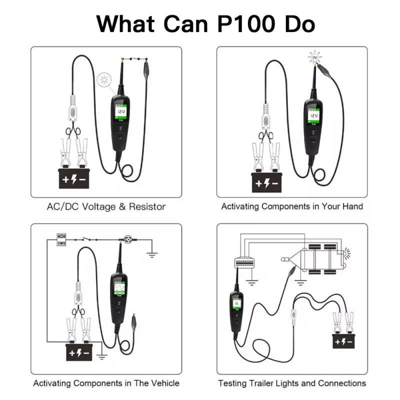 JDiag P100 Automotive Car Circuit Tester Power 12V/24V Electric Circuit Tester Car Diagnostic Tool TFT Screen Voltage Resistance Multilingual Support 2M Extension Cable