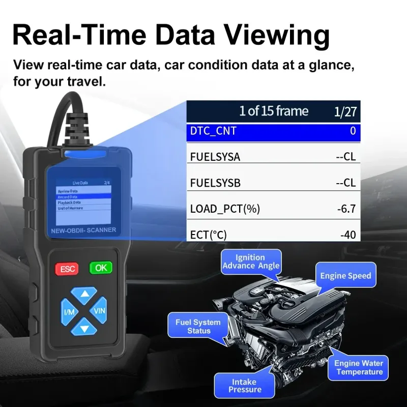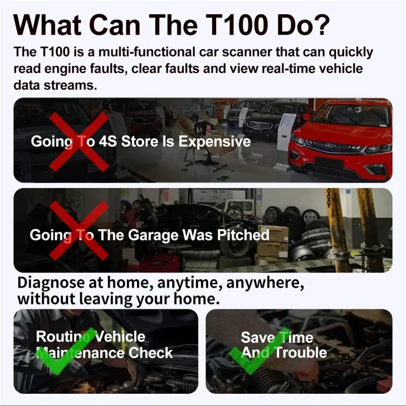 JDiag T100 OBD II Scanner Professional Automotive Diagnostic Tool Supports All OBDII Protocols Fault Code Reader Real-Time Data TFT Color Screen