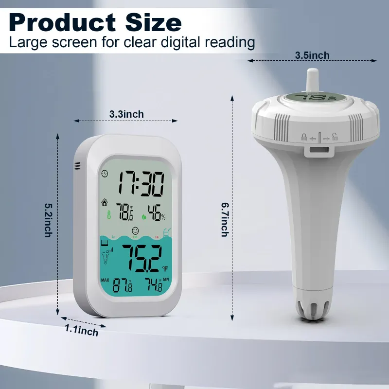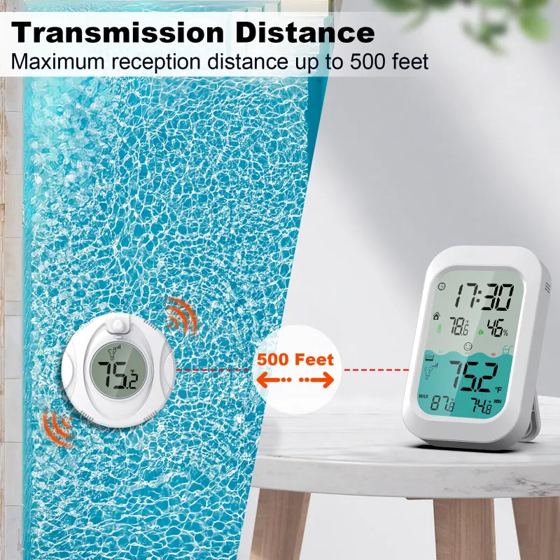 MESTEK CP02 Wireless Floating Thermometer Pool Water Temperature Monitor 500ft Range LED Backlight Waterproof Indoor Outdoor