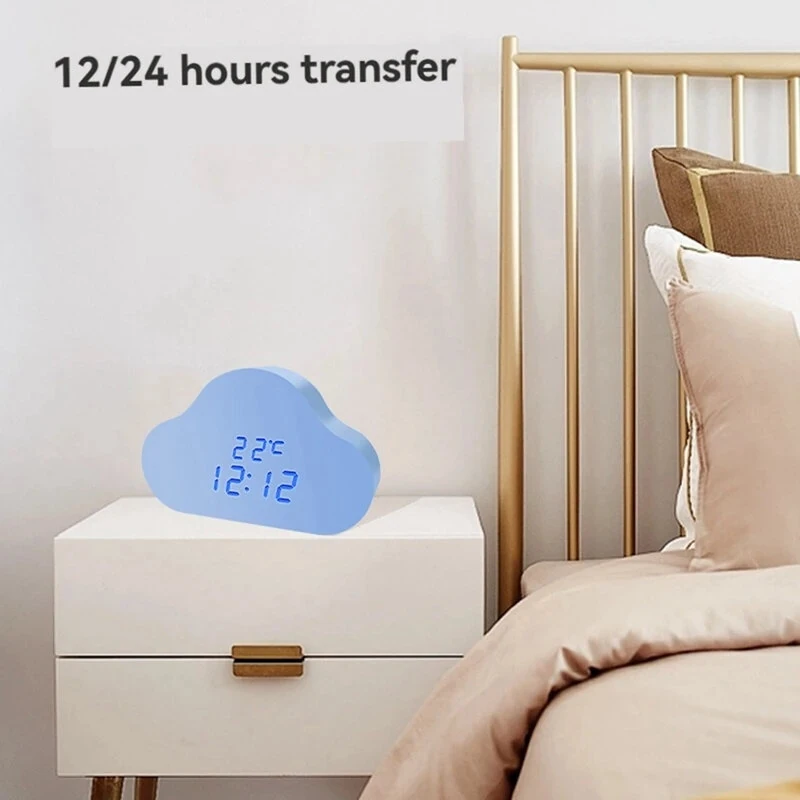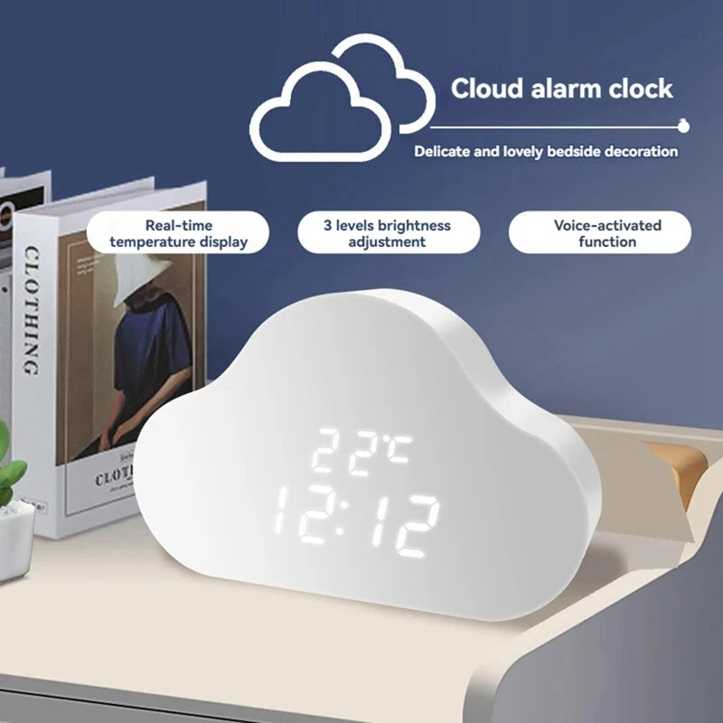 Cloud Alarm Clock Hygrometer KD8618 Adjustable Brightness 24-Hour Time Display Voice Activation Snooze Function Portable