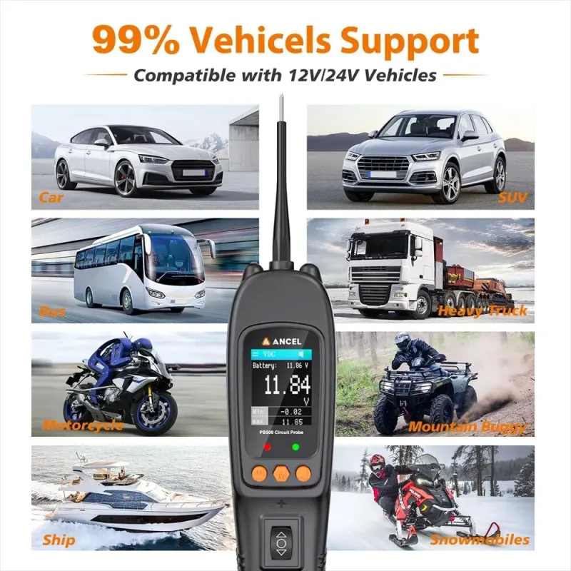 ANCEL PB500 Circuit Tester Automotive Diagnostic Tool with Multi Functional 7 Test Modes Dual Display High Precision and Overload Protection for DC/AC Voltage Frequency Duty Cycle