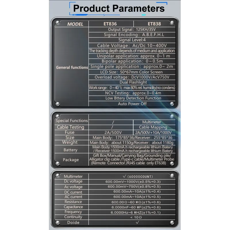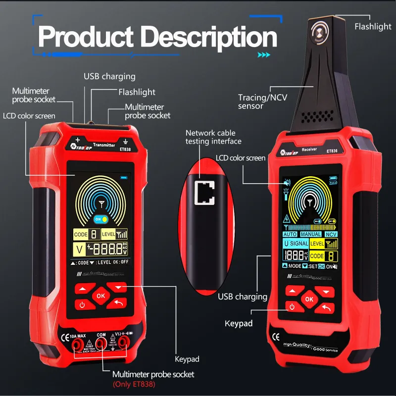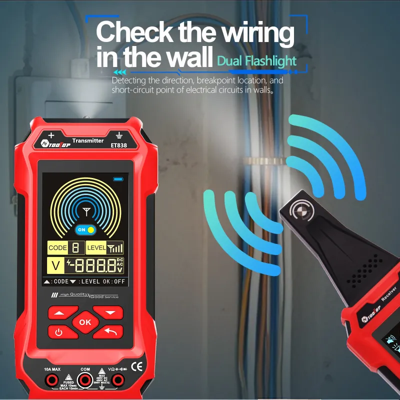 ET836 ET838 Underground Cable Tester Locator Wire Tracker Detection Multimeter Wall Electrical Lines Water and Gas Supply Pipeline Path