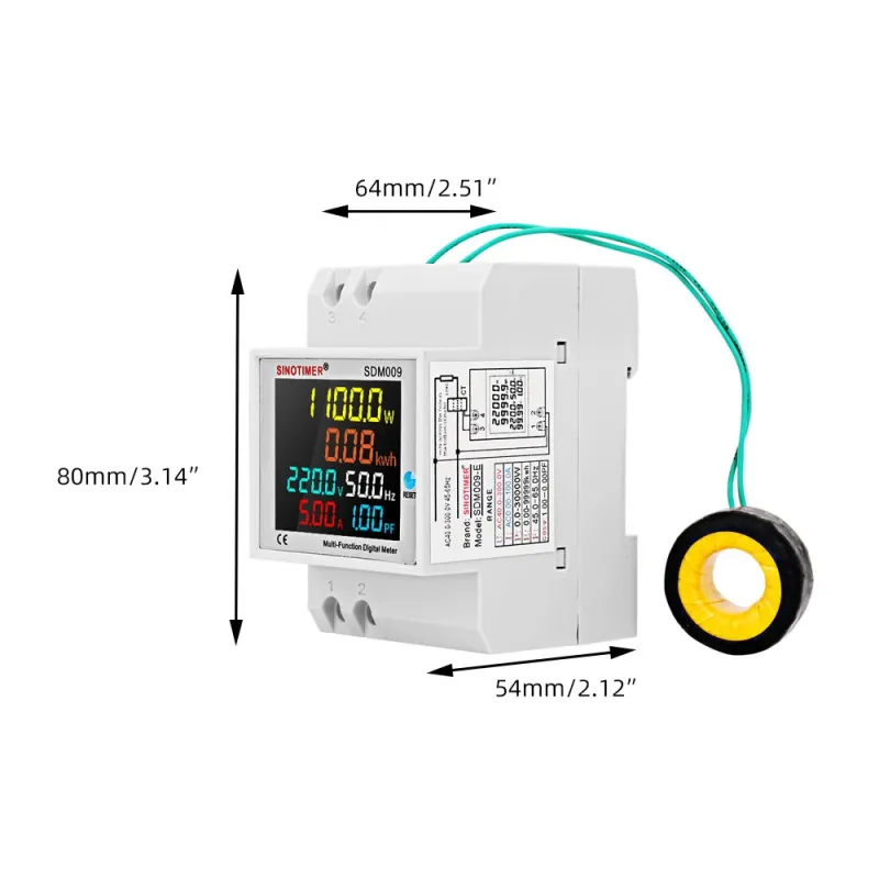 SINOTIMER SDM009 AC40-300V Rail Single-phase Digital Voltage Current Frequency Power Factor Electric Multi-function Measuring Instrument