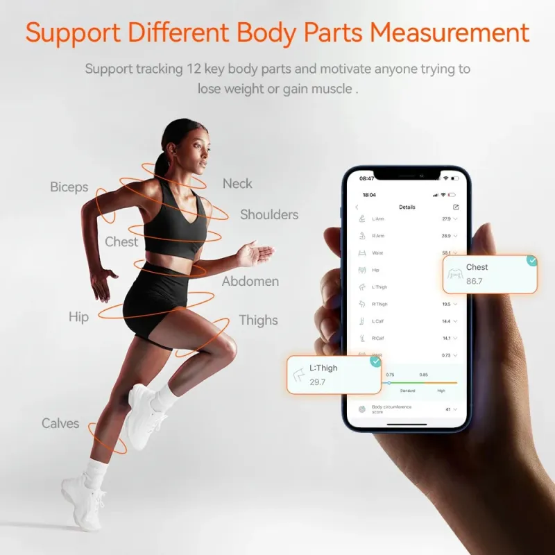 Smart Digital Measuring Tape Accurate 0.1 cm/inch LED Display Rechargeable Type-C Battery Fitness App Integration Portable Design
