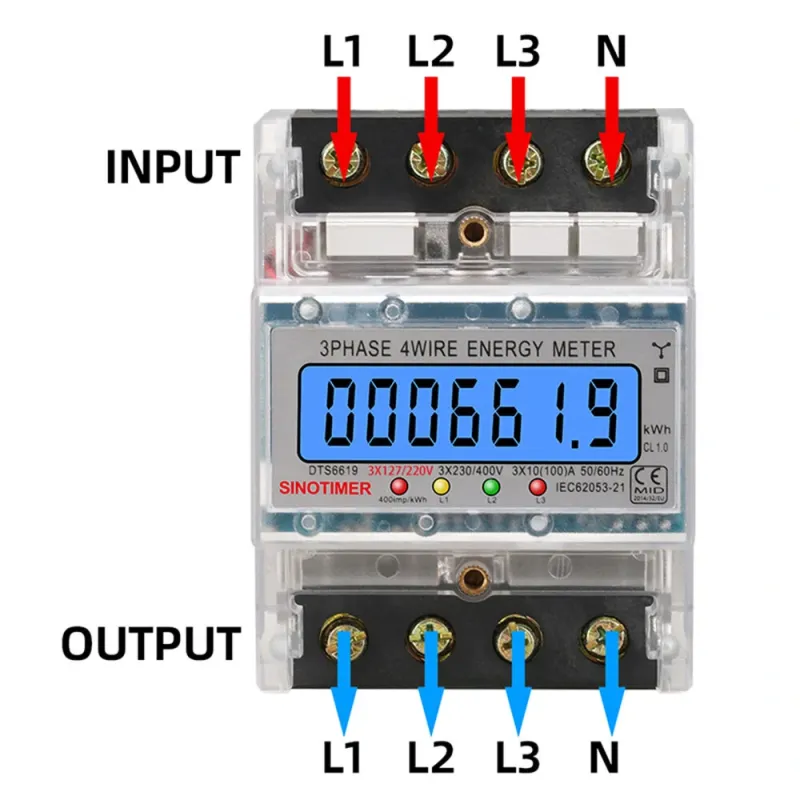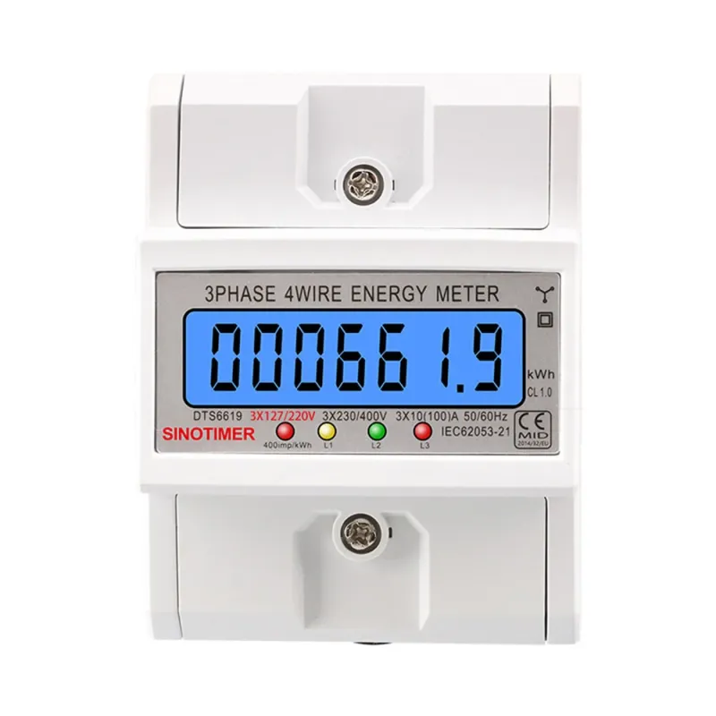 SmartMeter 100A LCD KWh Energy Meter with Three-Phase Backlight Guide Rail for Home Use Energy Monitoring 3*127/220VAC Power Consumption Measurement