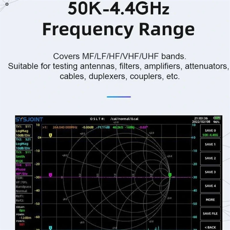 SV4401A 50KHz-4400MHz Vector Network Analyzer 7 inch Touch Screen 100db Dynamic NanoVNA Vector Network Analyzer