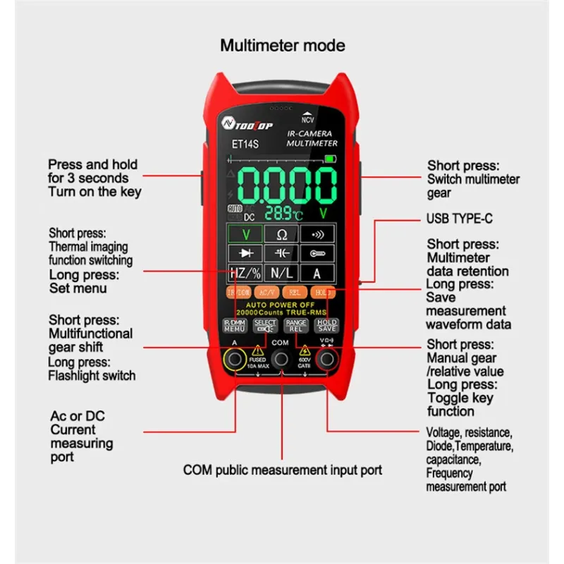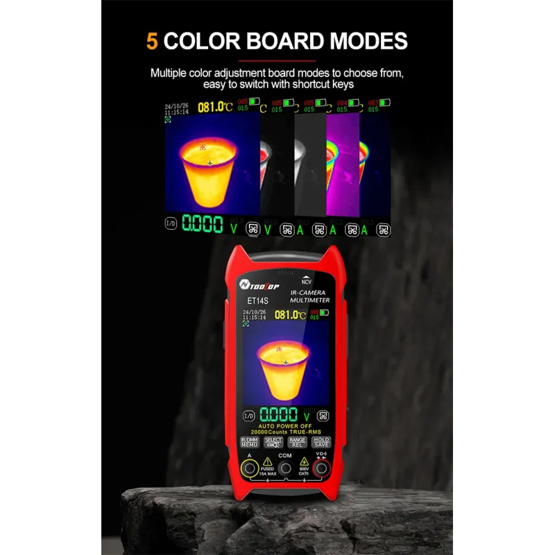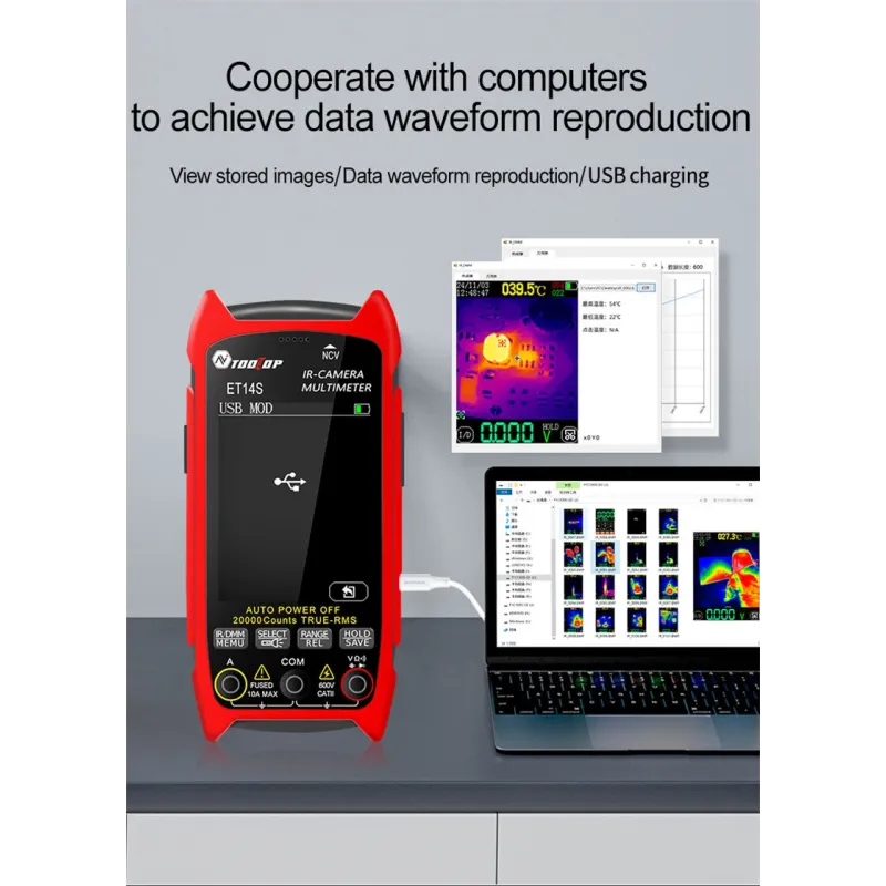 TOOLTOP ET14S/ET14SPRO Thermal Imaging Multimeter & PCB Circuit Board Tester ISR 240x240 -20C to +550C 25HZ 1000V DC 750V AC 10A Resistance Measurement