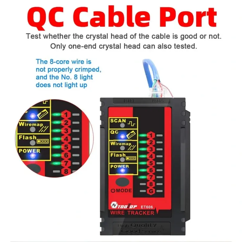 TOOLTOP ET606 Network Cable Tester POE Test 3KM Digital Cable Tracing Cross Short Circuit Checking Crystal Port RJ45/RJ11 Tester