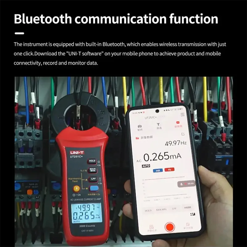 UNI-T UT251C+ Leakage Current Clamp Meter True RMS Bluetooth AC Current Tester 3000 Counts Harmonic Measurement Portable Auto Off