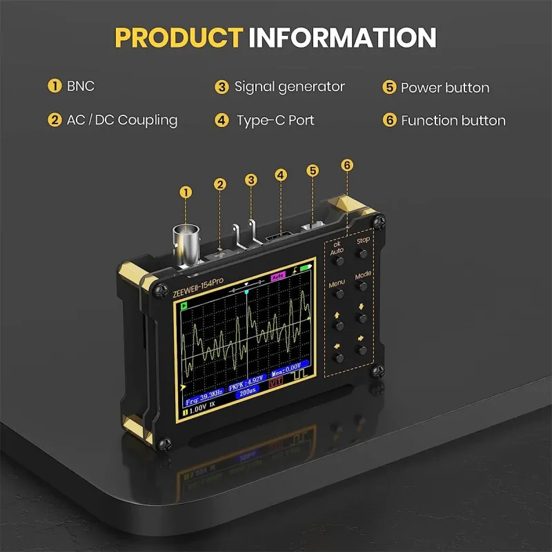 ZEEWEII DSO154Pro Mini Handheld Digital Oscilloscope 154pro 40MSa/s Sampling Rate 18MHz Bandwidth PWM Signal Generator LCD Display