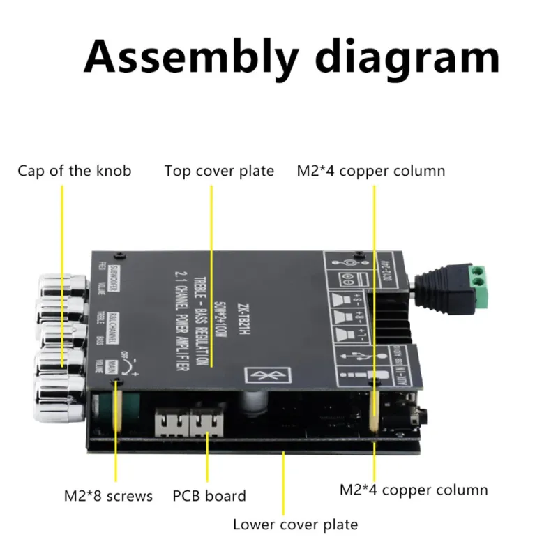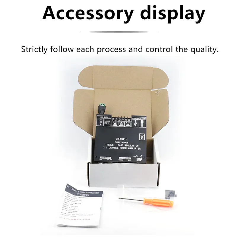 ZK-TB21H Bluetooth 5.1 2.1 Channel Audio Power Amplifier Module Multi-Input AUX USB Subwoofer Support TPA3116D2 Chip 50W+100W Output Versatile Speaker Compatibility