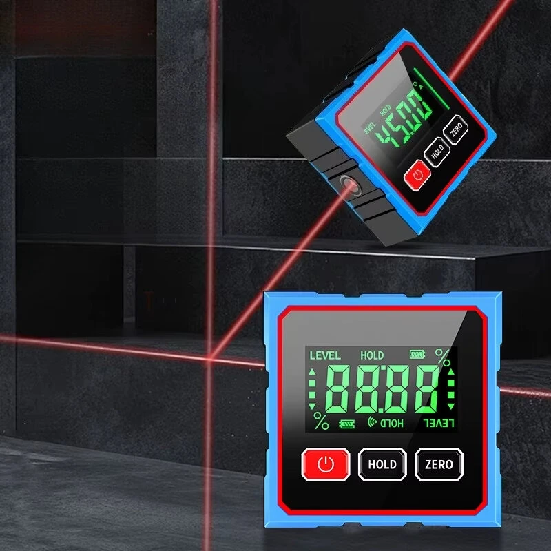 CZDANG Electronic Digital Angle Dipmeter Four Sided Magnetic Inclinometer 0.2 Accuracy Cross Laser Level Type-C Charging Woodworking Gradient Measuring Tool