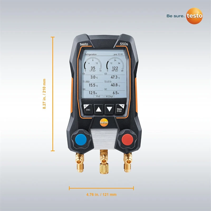 ForTesto 550s Digital Manifold Gauge HVAC Refrigeration Pressure 60 Bar Vacuum 20000 Micrometer Temperature Bluetooth Wireless IP54 Professional Tool