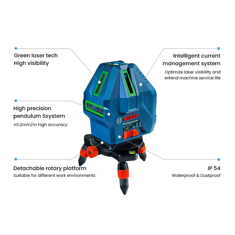 GLL50-15XG Professional Laser Level 5 Lines Green Beam 3D Self-leveling Horizontal & Vertical Cross Measuring Tool