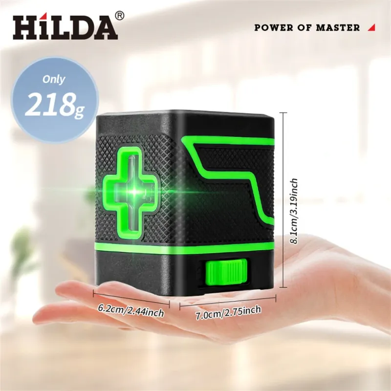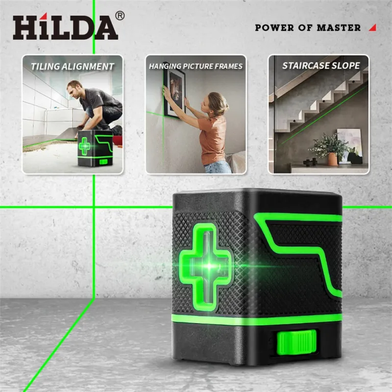 HILDA Laser Level 2 Lines Green Light Mini Self-Leveling Horizontal And Vertical Cross Super Powerful Laser Beam Line