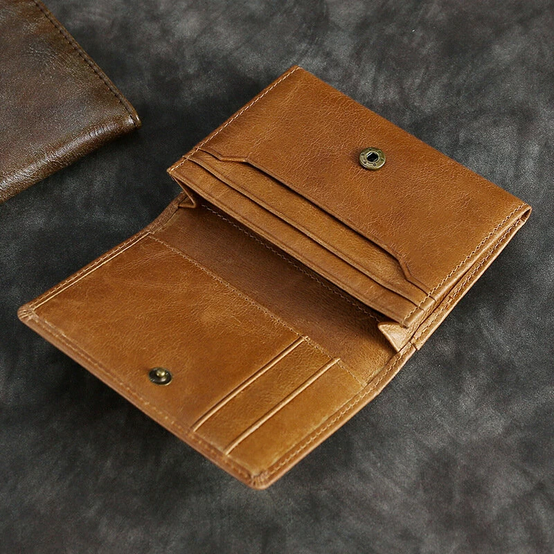 Ekphero Men's Genuine Leather Card Holder Retro Head Oil Wax Multi-card Bag RFID Blocking Credit Card Case Large Capacity ID Card Wallet Case Vintage Hasp Male Purse