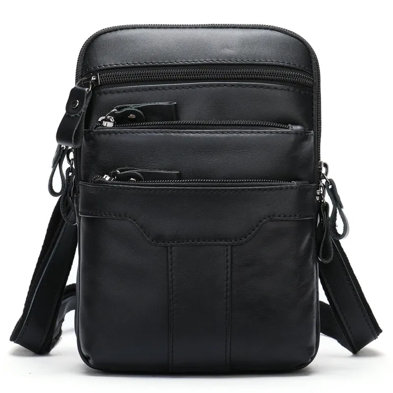Ekphero Men's Genuine Leather Crossbody Bag with Zipper Mobile Phone Shoulder Bag Small Travel Waist Bag Multi-Pockets Male Belt Waist Packs