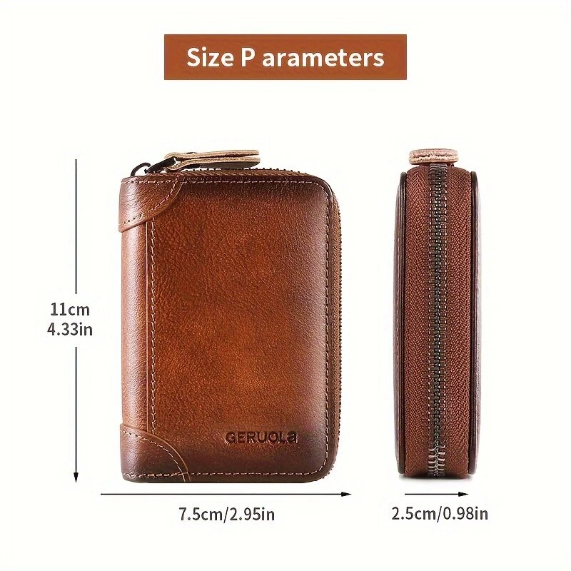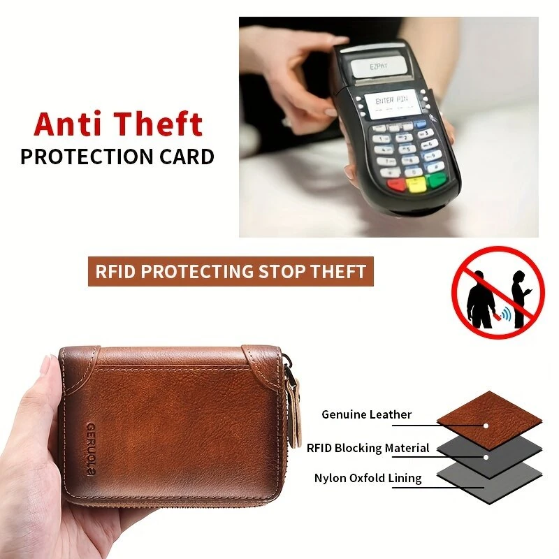 Ekphero RFID Blocking Genuine Leather Men's Card Holder, Vintage Cowhide Leather Large Capacity Multi-card Slot Short Credit Card Bag, Driver's License Leather Card Case,Money Clips Mini Bag for Men
