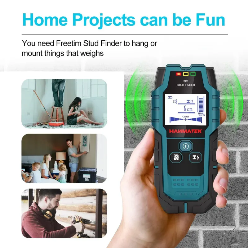 HANMATEK SF1 Stud Finder Wall Scanner Detector Professional 5 in 1 Scan Mode HD LCD Display Automatic Calibration with Audio Alarm Ideal for Detecting Metal Wood AC Wires Behind Walls Floors Ceilings