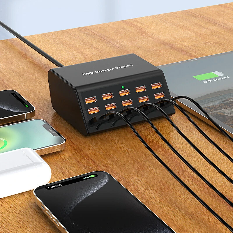 100W 15-Port USB Charger 15xUSB-A Fast Charging Desktop Charging Station EU Plug US Plug for Huawei Pura 70 Ultra for Xiaomi Civi 4Pro for Samsung Galaxy Z Fold6 for iPhone 15 14 13 12 Pro