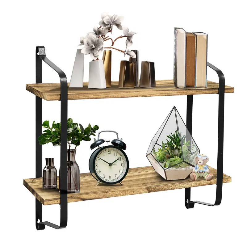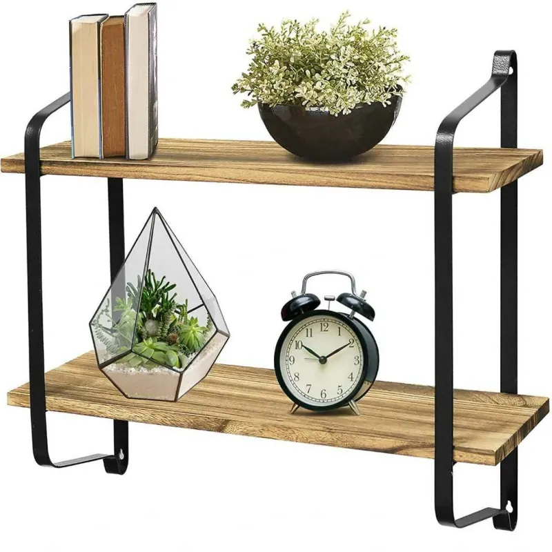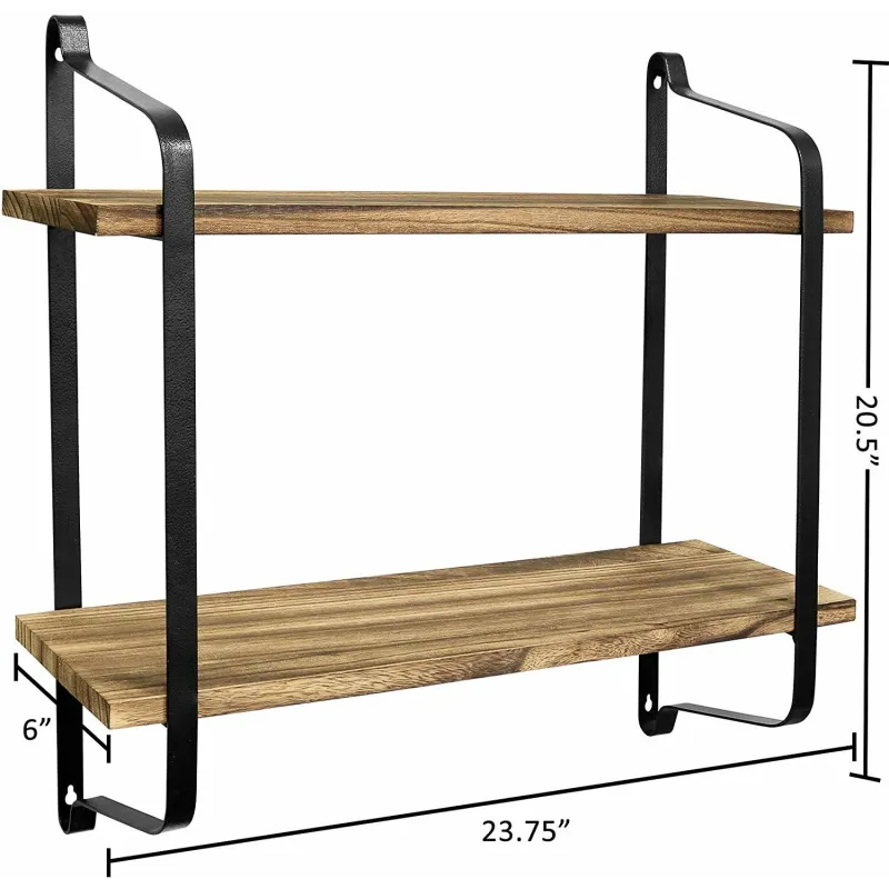 2-Tier Wooden Wall Mounted Floating Shelves DIY Storage Shelving Display Bracket