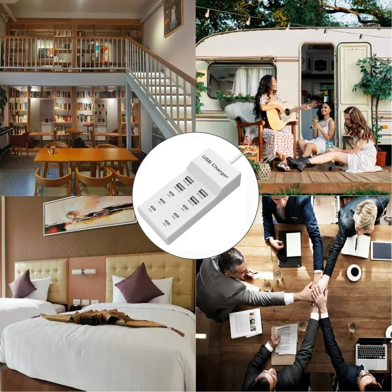 50W 10-Port USB Charger 4USB-A+6USB-C Fast Charging Desktop Charging Station EU Plug US Plug for iPhone 15 14 13 for Samsung Galaxy S24 for Huawei Pura 70 Ultra