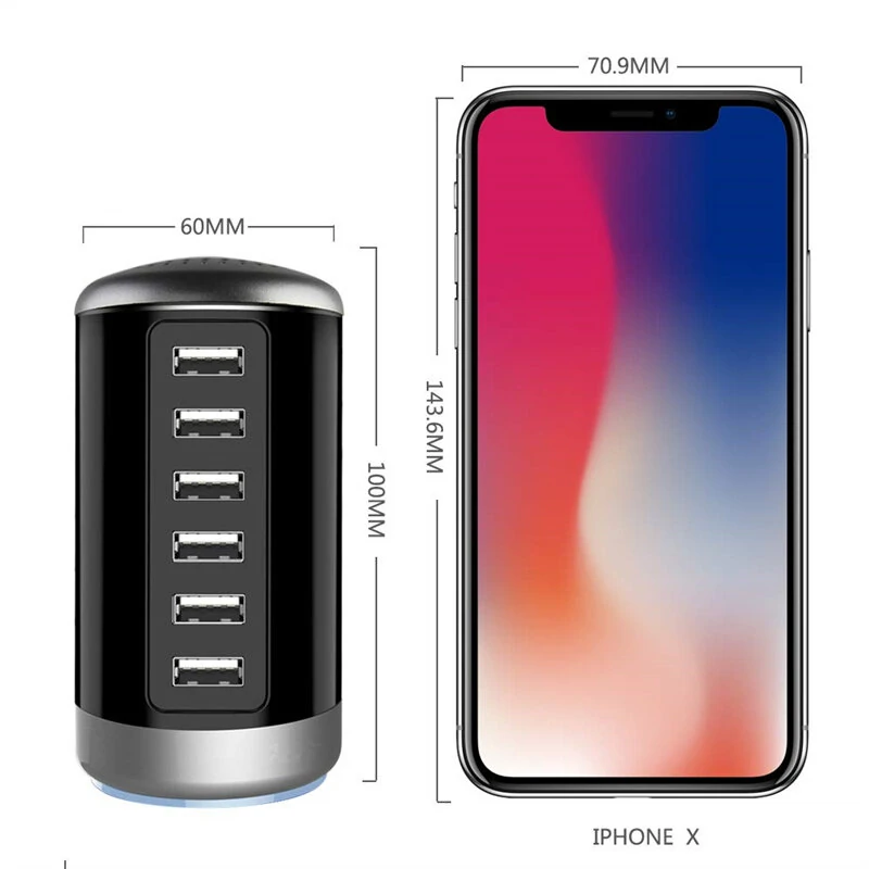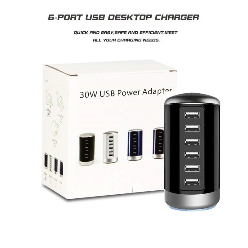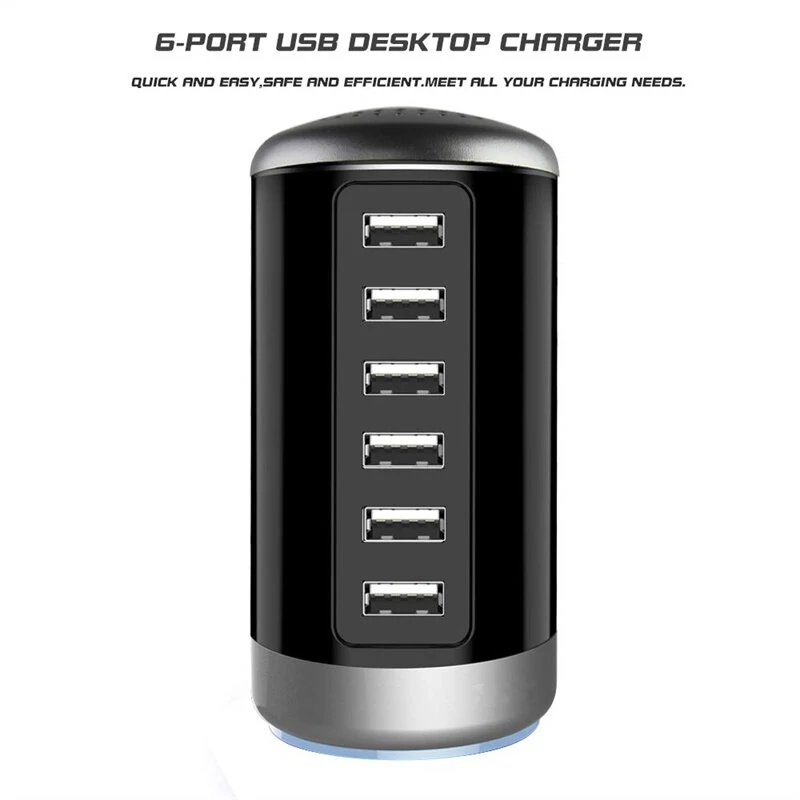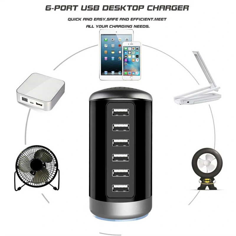 6A 6-Port USB Charger 6USB-A Fast Charging Desktop Veritical Charging Station EU Plug US Plug for iPhone 15/14/13pro Max for Huawei Pura 70 Ultra for Xiaomi Civi4 Pro for Samsung Galaxy S24