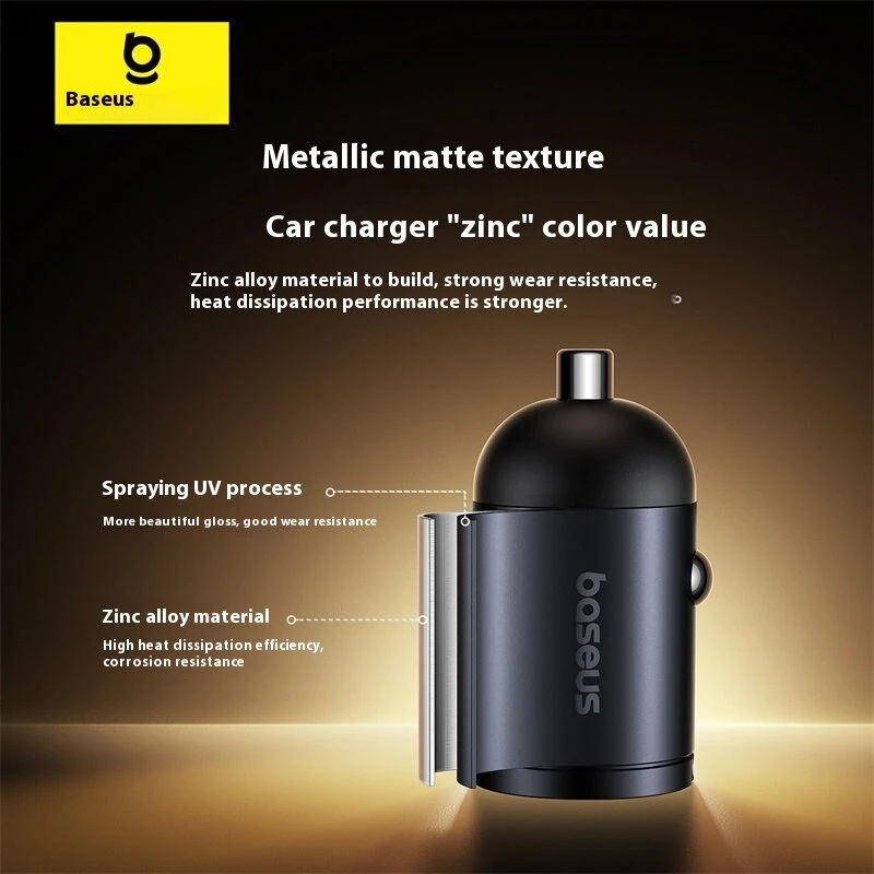 Baseus 30W 2-Port USB PD Car Charger Adapter USB-C+USB-C PD QC SCP FCP AFC Fast Charging for iPhone 16 16 Pro 15 14 13 Pro Max for Huawei Mate XT for Xiaomi MIX Fold4 for Samsung Galaxy Z Flip6