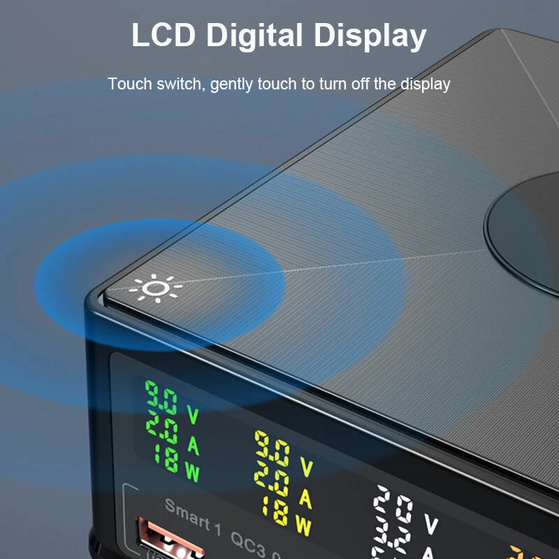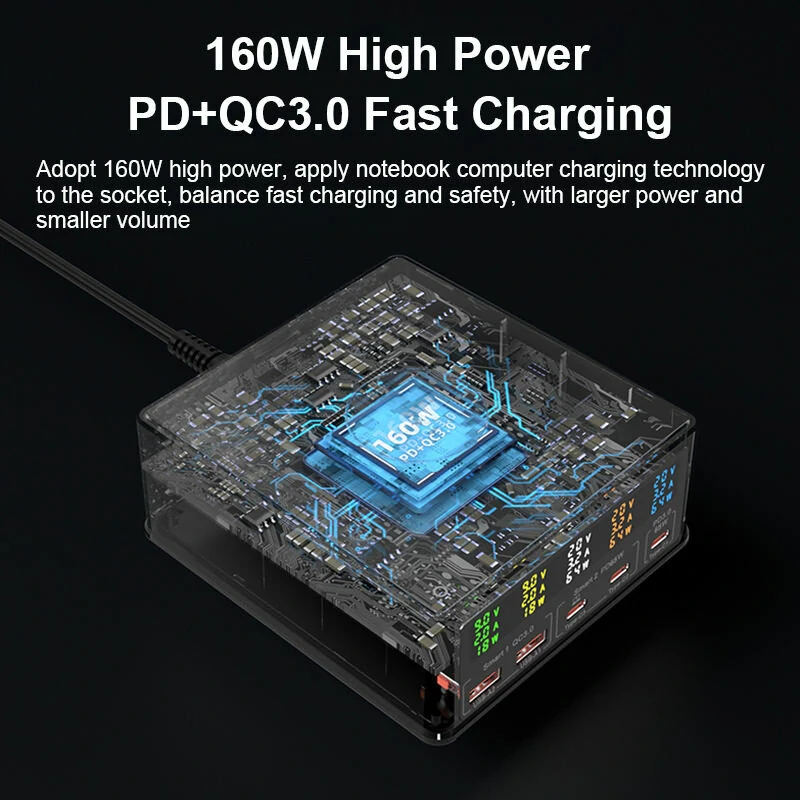 BlitzWolf 868H 160W 5-Port USB PD Desktop Charger Dual USB-A QC3.0+Dual PD65W Type-C+65W Type-C PD3.0 with 15W 10W 7.5W 5W Wireless Fast Charger for iPhone 14 14 Pro Max for Samsung Galaxy Z Fold 4 S22 Ultra