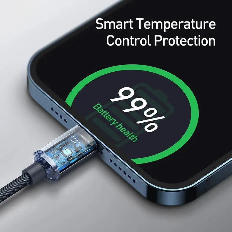 Baseus Crystal Series PD20W Type-C to iP Cable Fast Charging Data Transmission Tinned Copper Core Line 1.2M/2M Long for iPhone 14 14 Plus 13 14 12 for iPad