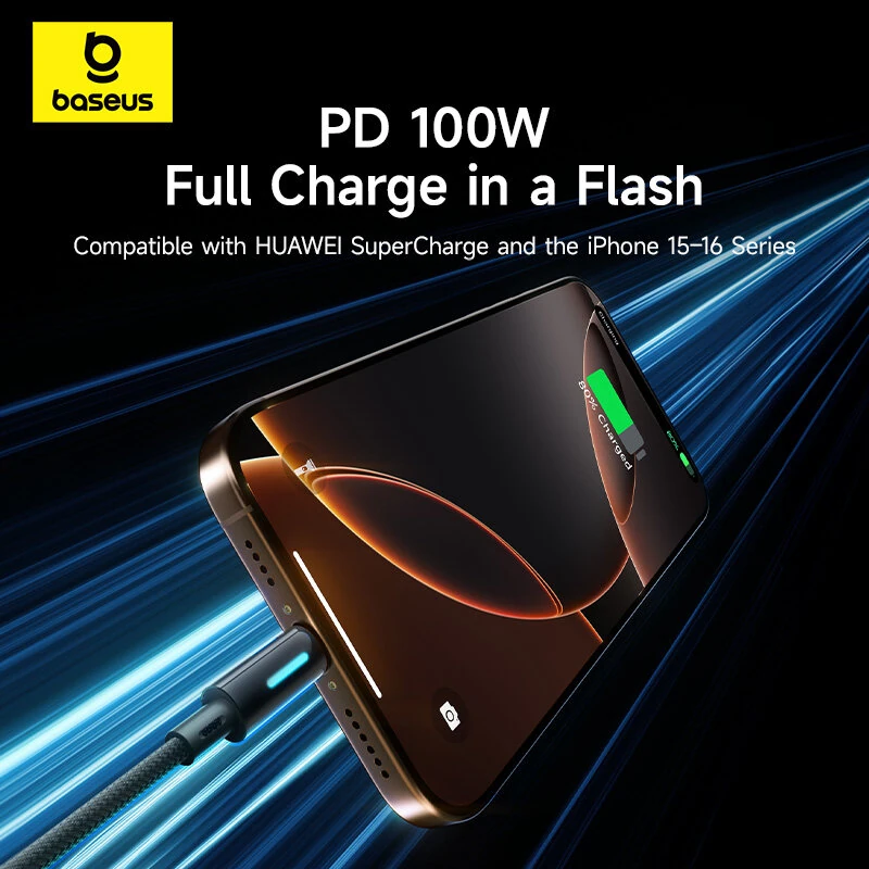 Baseus Vivid Speed PD100W USB-C to USB-C Cable Fast Charging Data Transmission Thickened Copper Core Line 1M/2M Long for iPhone 16 Pro 15 Pro Max for Huawei Mate XT for Xiaomi 15pro for Samsung Galaxy Z Flip6