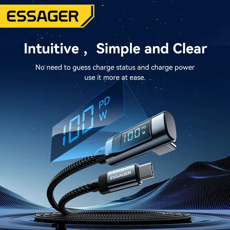 ESSAGER ES-X47 5A 100W Type-C to Type-C Digital Display Cable PD Fast Charging Data Transmission Copper Core Line 1M/2M Long for iPhone 17 17Pro 16 Pro Max 15 for Xiaomi 17pro for Huawei Mate XTs