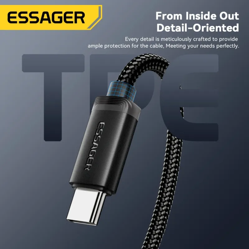 ESSAGER ES-X60 3A USB-A to Type-C Cable QC3.0 AFC FCP Fast Charging Data Transmission Copper Core Line 1M/2M Long for iPhone 16 15 15 Plus for Huawei Mate XT for Samsung Galaxy Z Flip6 for Xiaomi MIX Fold4