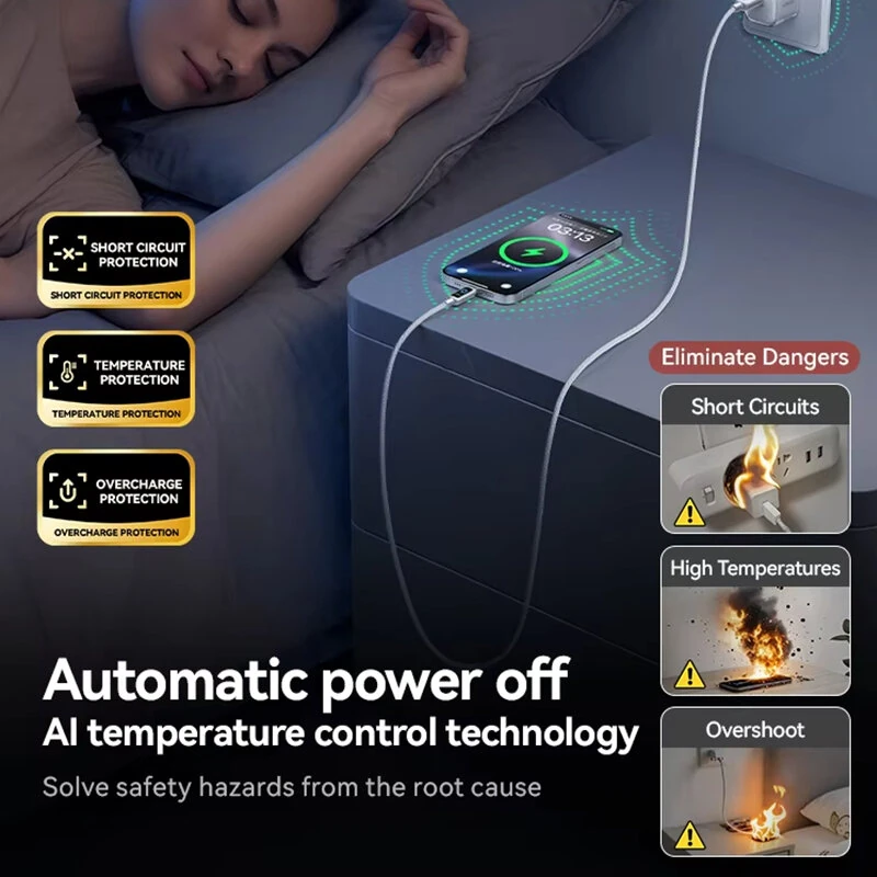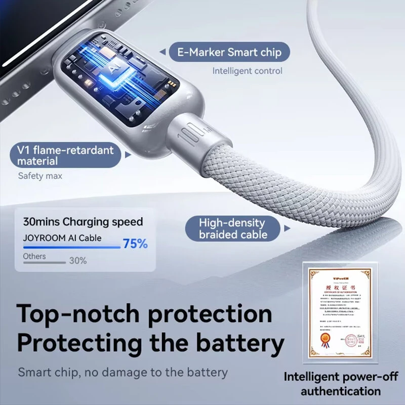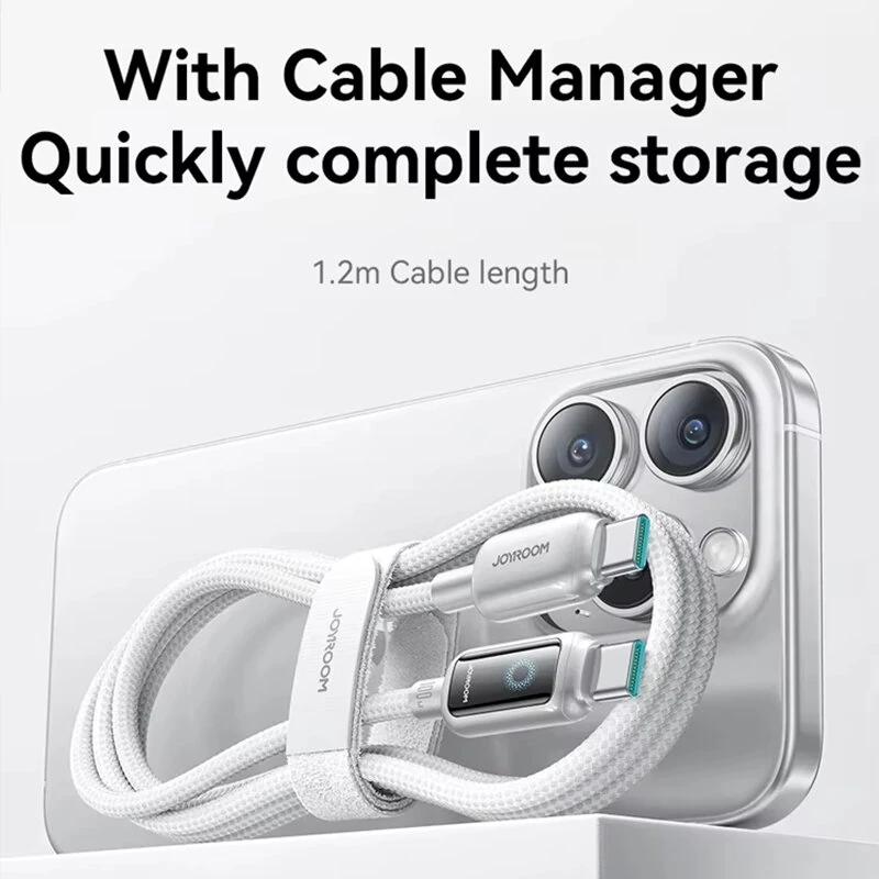 JOYROOM S-A55 6A 100W Type-C to Type-C AI Power-off Cable PD3.0 Fast Charging Data Transmission Tinned Copper Core Line 1.2M Long for iPhone 17 17Pro Max 16 15 14 for Samsung Galaxy S25 Ultra for Xiaomi 17pro for OPPO