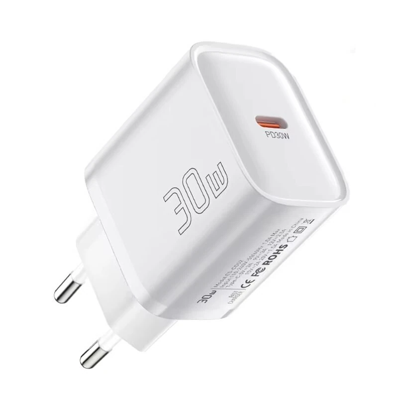 ESSAGER ES-CD52 30W 1-Port USB PD Charger USB-C PD3.0 QC3.0 FCP SCP BC1.2 iP2.4A Fast Charging Wall Charger Adapter EU Plug for iPhone 16 16 Pro 15 14 13 Pro Max for Huawei Pura 80 Ultra for Xiaomi MIX Flip 2