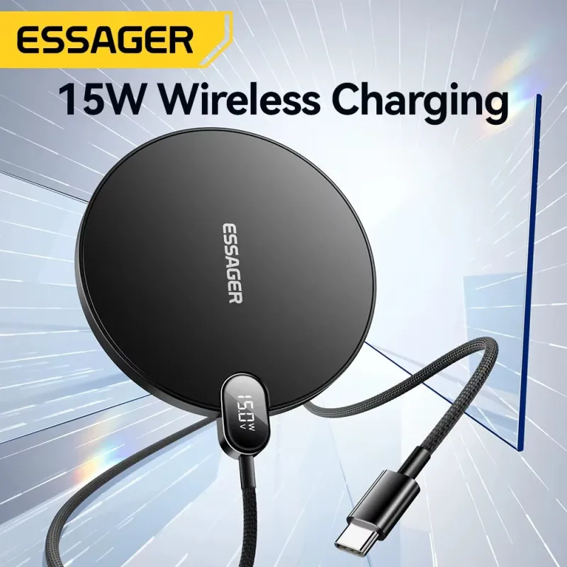 ESSAGER ES-WX15 15W Wireless Charger with LED Power Display Fast Wireless Charging Pad for Smart Phones for iPhone 16 16 Pro 15 14 13 Pro Max for Huawei Pura 80 Ultra for SAMSUNG for XIAOMI