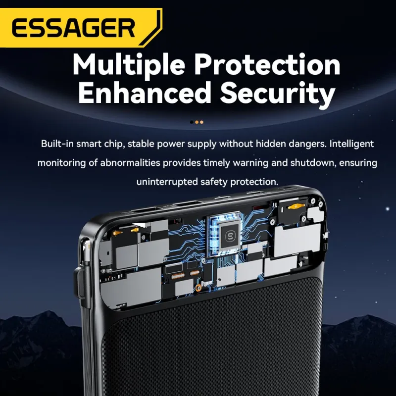 ESSAGER PB905 120W 18.5Wh 20000mAh LED Digital Display Power Bank Built-in Type-C+iP Cable External Battery Power Supply with 2 Input & 5 Outputs Support PD2.0 QC3.0 FCP SPC AFC Fast Charging for iPhone 16 Pro 15 14 Pro Max for Huawei Mate XT for XIAOMI